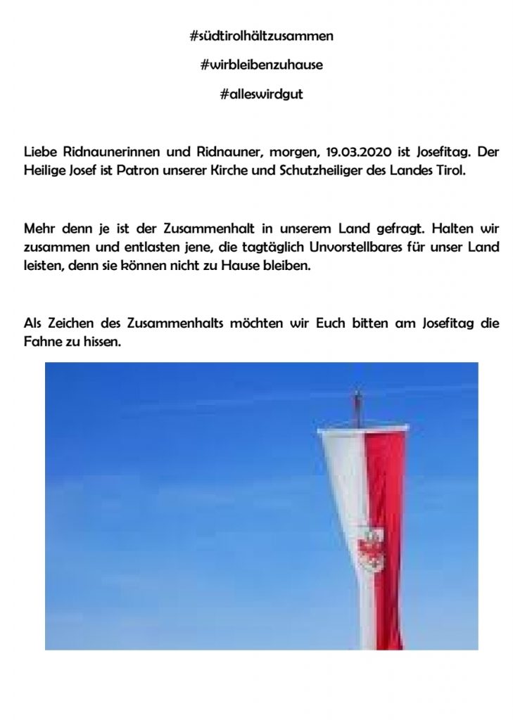 Alles wird gut, wir halten zusammen, Josefitag 2020